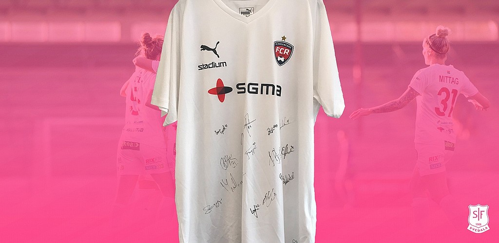Och nu auktionerar vi ut en signerad FC Rosengårdströja där hela summan går till Bröstcancerfonden!
