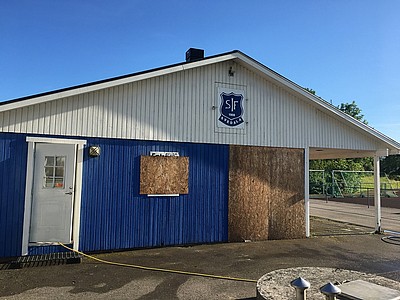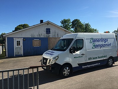 Så här fin blev vår gamla klubbstuga på Svedalagården efter det att vår sponsor Sanerings Companiet varit och gjort en fasadtvätt.